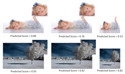 在显著物体检测的基础上,我们提冲了一种基于显著物体布局的美学评价系统,该系统可以准确预测用户的视觉体验效果。通过比较图像编辑模块前后及采用不同编辑方法的视觉体验,该系统可以有效辅助图像处理过程。下图展示了对于经过不同图像缩放过程的结果图的评价结果: