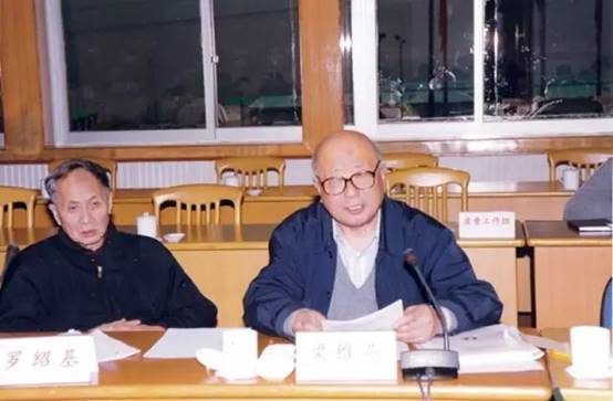 梁维燕(右)在一次三峡工程质量工作会议上(左为罗绍基院士)